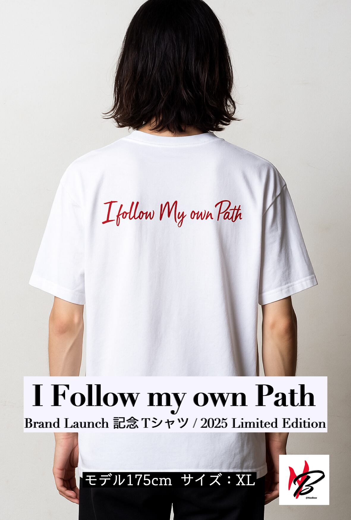 フロントにはブランドロゴ、背面には「I follow my own path」のメッセージをプリントしました。