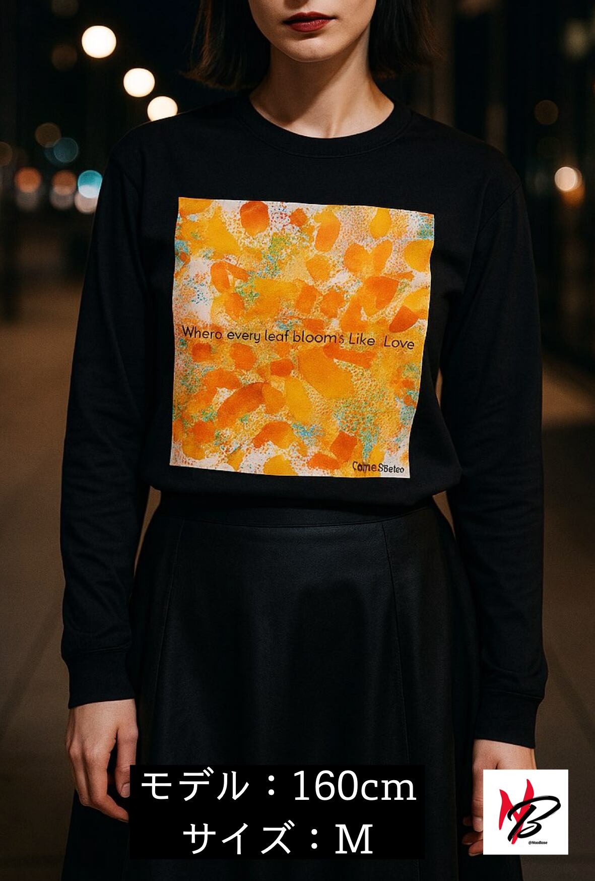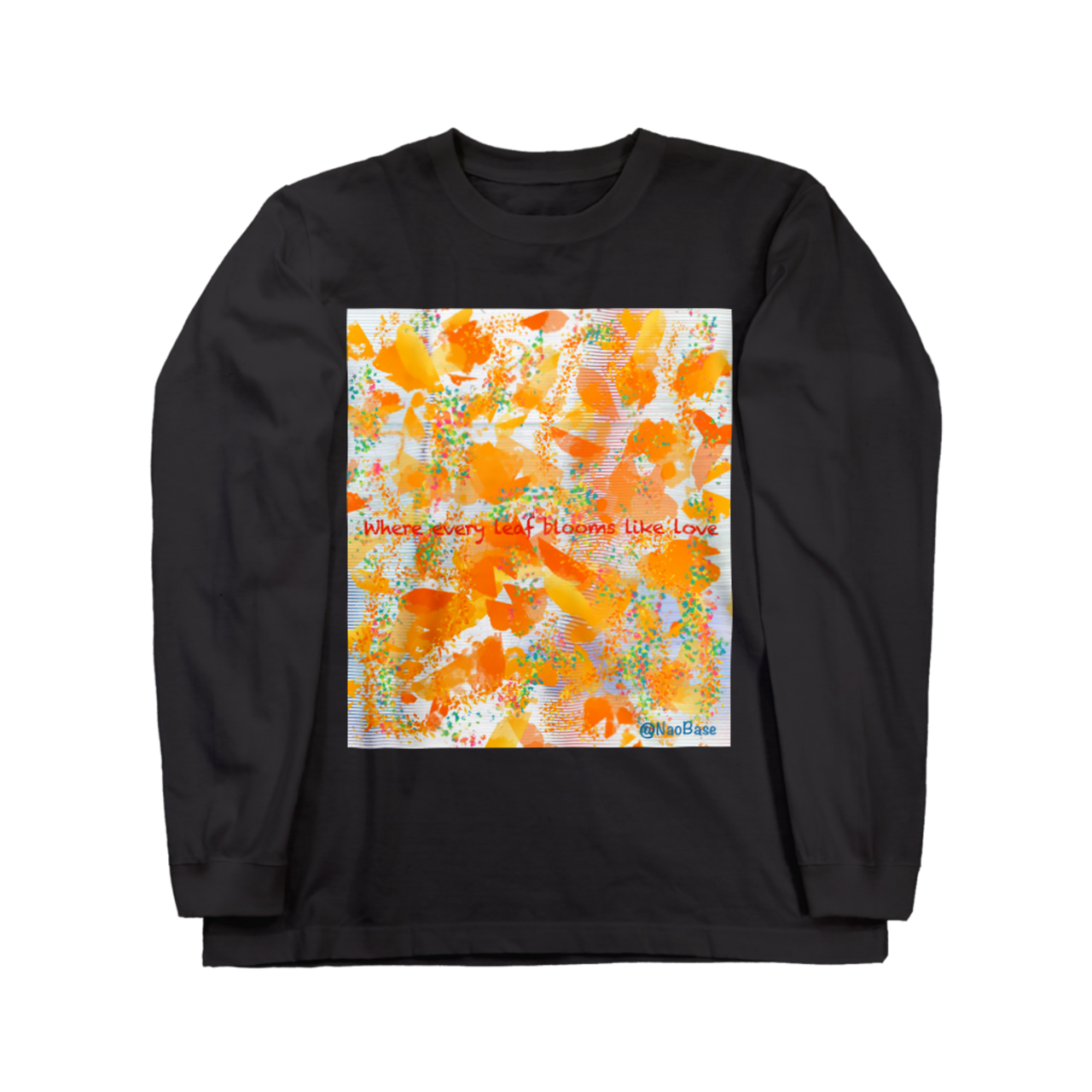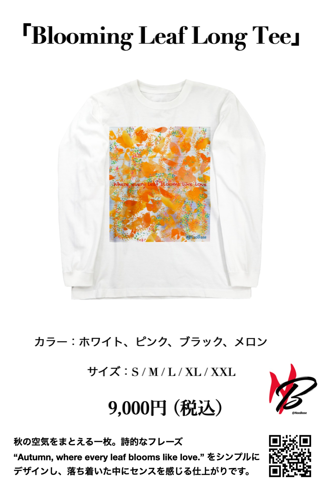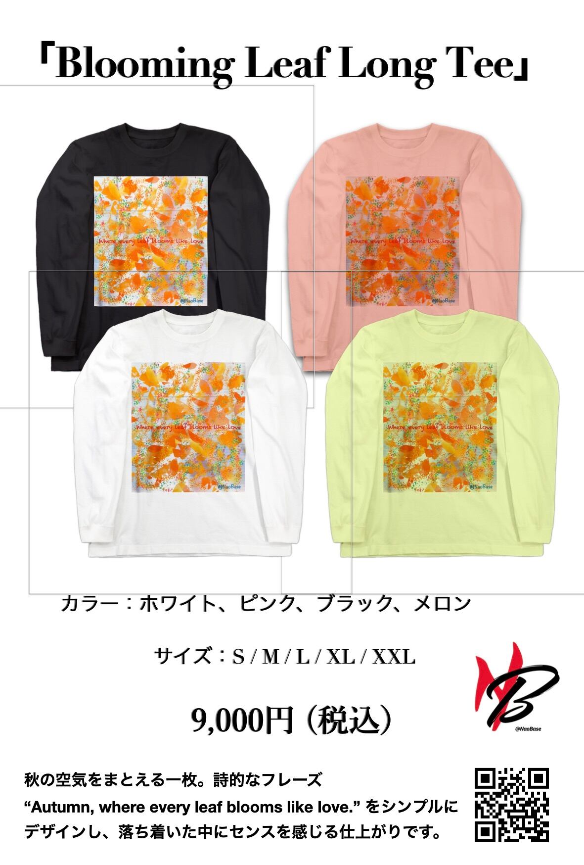 フレーズ “Autumn, where every leaf blooms like love.” を配置。