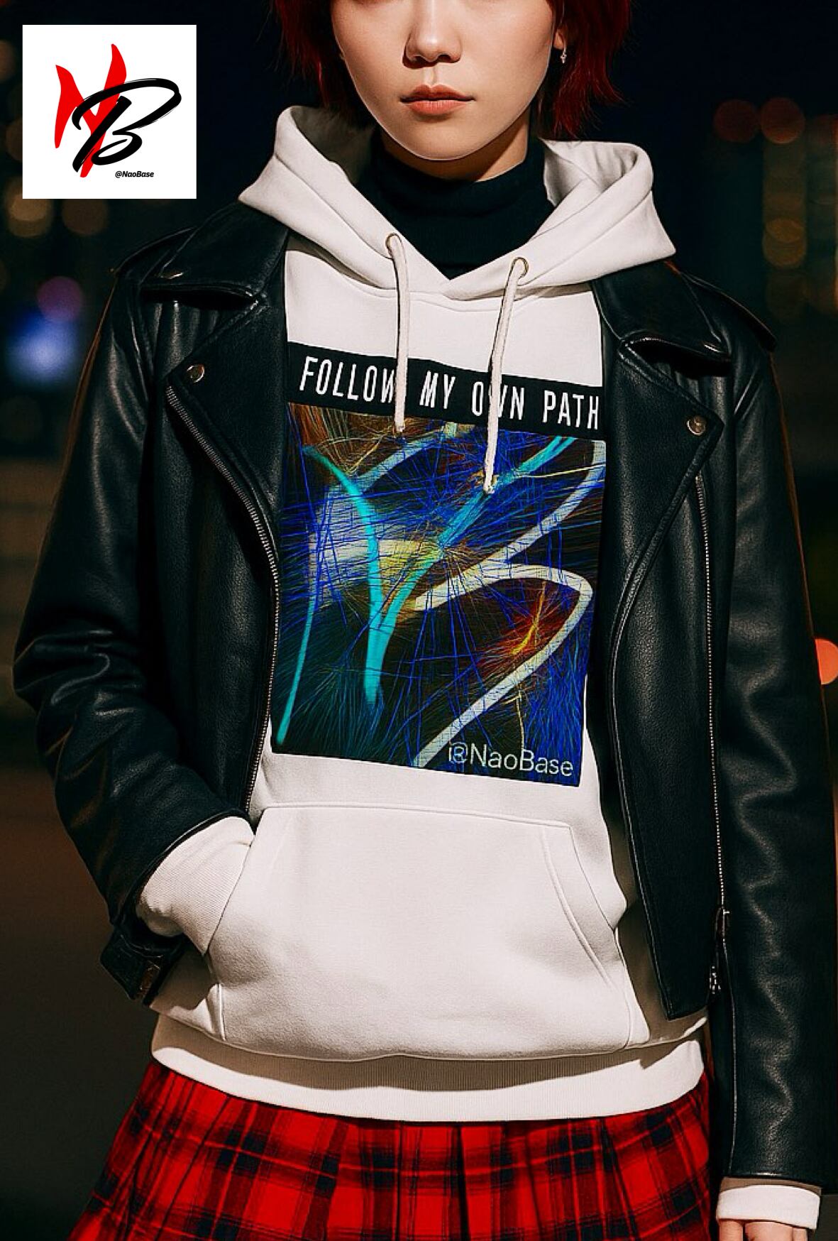 冬の空気に映える抽象アートと、胸元に刻まれたメッセージ。